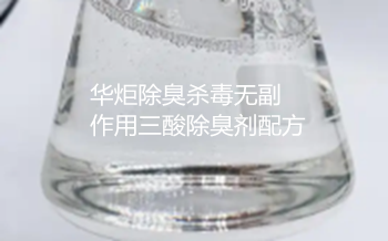 华炬新产品研究所技术咨询委员会科研人员现推荐一项一种除臭杀毒无副作用三酸除臭剂配方,按照该技术配方配置的三酸除臭剂具有非常好的效果,若去掉其中任何一种效果都会大大降低,如添加其它酸,虽然也经常用在一些除臭剂中,但添加后,其效果也会大大降低。该技术最突出的特点是采用的三种酸均可以食用,因此,除臭杀毒不任何副作用,,该技术的有益效果是:该技术使用三种常见的酸来配制除臭剂,其能长期杀菌、消毒、除异味、驱蝇,以及净化空气,而且这个三种酸均可以食用,材料来源广泛,配制方法简单,成本低,环保高效,现将该一种除臭杀毒无副作用三酸除臭剂配方及技术方案实施例介绍如下供研究交流参考:(971221 281276)