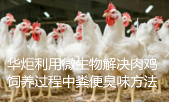 华炬新产品研究所技术咨询委员会科研人员现推荐一项利用微生物解决肉鸡饲养过程中粪便臭味方法,该技术既有如下优点:1、该技术所提出的解决肉鸡粪便臭味的方法措施独特,实施过程工艺简单,容易实施。2、通过实施该技术,在肉鸡的饲养过程中增加投喂有益菌,有益菌能有效的除臭杀菌去病毒,所以,肉鸡排出的粪便没有臭味。3、通过实施该技术,肉鸡所排出的粪便可以不用经过发酵处理便可直接拿去当做饲料喂猪及当做肥料直接施在土壤中,省工、省事、省时。4、通过实施该技术,有效的解决肉鸡粪便臭、污染环境的问题,同时保障了肉鸡养殖业中瘟疫病发率低,有效的降低了养殖风险系数,继而使肉鸡养殖的经济效益保持稳定。5、通过实施该技术,肉鸡消化非常好,肠胃保持良好,肉鸡食欲旺,生长迅猛。所饲养的肉鸡生产成本极低,但饲养出来的鸡肉质鲜美、口感香甜,是一种高品质、极具特色的肉鸡,现将该利用微生物解决肉鸡饲养过程中粪便臭味方法及技术方案实施例介绍如下供研究交流参考:(311311 241304)