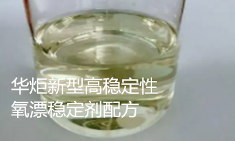 华炬新产品研究所技术咨询委员会科研人员现推荐一项一种新型高稳定性氧漂稳定剂配方,该技术与现有技术相比,该技术具有如下有益效果: (1)漂白过程中对纤维的损伤小; (2)具有一定的化学稳定性,在漂白所需的碱浓度下稳定; (3)漂白织物白度好,对双氧水具有很好的稳定作用; (4)不结垢,不在设备和纤维上沉积不溶物,经其处理的织物白度高,毛效高,手感好,现将该一种新型高稳定性氧漂稳定剂配方及技术方案实施例介绍如下供研究交流参考:(711241 641568)