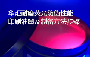 华炬新产品研究所技术咨询委员会科研人员现推荐一项一种耐磨荧光防伪性能印刷油墨及制备方法步骤,该技术有益效果是:采用改性醇酸树脂、环氧树脂在环氧丙烷丁基醚、多缩水甘油醚的有机溶剂中均质处理,并加入石墨粉、辉绿岩粉、滑石粉、云母粉、锆英砂等填充细料,可以提高印刷油墨的耐磨性能,此外加入了荧光粉物质,可以实现印刷油墨的印刷防伪功能,现将该一种耐磨荧光防伪性能印刷油墨及制备方法步骤及技术方案实施例介绍如下供研究交流参考:(741411 535541)