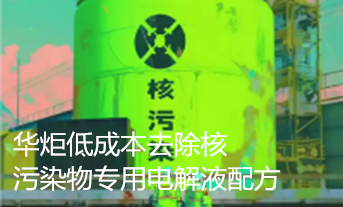 华炬新产品研究所技术咨询委员会科研人员现推荐一项一种低成本去除核污染物专用电解液配方,该技术的优点在于: 使用该技术电解液进行放射性去污处理,去污率高(可达90%以上),处理时间短,二次污染物少,产生的放射性污水为传统方法的1%~15%。对金属设备和材料的腐蚀小,溶解掉的表面层很薄(几微米到几十微米),去污后部件的尺寸仍能保持在允许的公差范围内,仍可继续使用,现将该一种低成本去除核污染物专用电解液配方及技术方案实施例介绍如下供研究交流参考:(811471 641307)