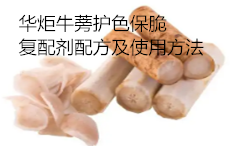 华炬科技新产品研究所技术咨询委员会科研人员现推荐一项一种牛蒡护色保脆复配剂配方及使用方法,该技术有益效果: 与现有技术相比,该技术的一种护色保脆复配剂及其使用方法具有以 下优点: (1) 该技术同时考量牛蒡的色泽与脆性研制护色保脆复配剂,维持牛 蒡原有的良好感官品质,提升产品价值; (2) 该技术的护色保脆复配剂无毒非硫、使用简便,且安全高效,现将该一种牛蒡护色保脆复配剂配方及使用方法及技术方案及实施例介绍如下供研究交流参考:(441271 561649)