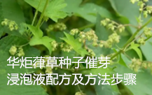 华炬科技新产品研究所技术咨询委员会科研人员现推荐一项一种葎草种子催芽浸泡液配方及方法步骤,该技术的优点是:该技术提供的一种葎草种子的催芽方法,方法简单,安全高效,将葎草种子经温水初次浸泡后,软化种皮,增加种皮含水量,便于增加后期的冷冻效果;低温瞬时冷冻只对种皮进行冷冻,种内胚芽保持生命活力,种皮经冷冻后再解冻,能够快速破坏种皮结构,利于养分的进入;经二次浸泡能够打破种子休眠,提供种子丰富的微量元素,提高胚芽活力,加快发芽,种子浸泡液制备简单,价格低廉,将有害的蒸馍水变成有益的营养成分,变废为宝,保护环境;最后经拌种剂拌种后进行催芽,拌种剂制备简单,原料以盛花期的葎草为主,富含生物活性物质,抗菌杀虫,提供营养成分,增强胚芽抗逆性,快速发芽,使葎草种子的处理时间缩短为3~4天,发芽率明显提高,达到94%,减少种植成本9.7%,现将该一种葎草种子催芽浸泡液配方及方法步骤及技术方案及实施例介绍如下供研究交流参考:(441271 263633)