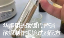华炬新产品研究所技术咨询委员会科研人员现推荐一项一种用硫酸银代替硝酸银制作银镜试剂配方,该技术其有益效果在于:用硫酸银代替硝酸银制作银镜,其镀光质量和使用效果都高于硝酸银,现将该一种用硫酸银代替硝酸银制作银镜试剂配方及技术方案及实施例介绍如下供研究交流参考:(611441 351447)