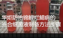 目前在养殖锦鲤的过程中时常出现烂鳃等疾病,造成在养殖观赏鱼锦鲤的过程中出现较高的死亡率,严重影响锦鲤的观赏性;华炬新产品研究所技术咨询委员会科研人员现推荐一项一种防治锦鲤烂鳃病的光合细菌液制备方法步骤,该技术的有益效果是:该技术鱼缸水经臭氧处理后,能杀死大量的病原微生物,同时光合细菌液能降解水中的有害物质,净化水质,使得锦鲤的生长环境更健康,降低了锦鲤烂鳃病的发病率;而且采用此配方制备的光合细菌液的成本比较低,且其中含有的Na2C2O4能抑制杂菌的生长,提供的光合细菌液和用其来预防和治疗锦鲤烂鳃病的方法,采用该光合细菌液防治效果明显,操作简便,并能净化水质,使锦鲤体质强健。现将该一种防治锦鲤烂鳃病的光合细菌液制备方法步骤及技术方案及实施例介绍如下供研究交流参考:(341271 231417)