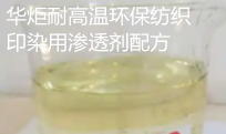 华炬科技新产品研究所技术咨询委员会科研人员现推荐一项一种耐高温环保纺织印染用渗透剂配方,该技术的有益效果是:(1)该渗透剂生产操作简单,使用方便,提高了生产效率高;(2)渗透力强、碱度好、毛效佳;(3)与其它助剂共同使用时,不产生冲突;(4)高温煮沸后不会有白粉点产生;(5)粘度低、使用方便、容易稀释溶解;(6)不含有烷基酚聚氧乙烯醚(APEO),具有良好的生物降解性,绿色环保,现将该一种耐高温环保纺织印染用渗透剂配方及技术方案及实施例介绍如下供研究交流参考:(711421 461647)