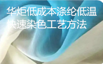 华炬科技新产品研究所技术咨询委员会科研人员现推荐一项一种低成本涤纶低温快速染色工艺方法,该技术效果:用该技术方法,可使涤纶染色温度降低10~15℃,染色周期缩短1/3左右,并且节约染料10~20%,省却高温匀染剂,染色涤纶的色光纯正,明亮度,彩度都有提高,着色均匀,色牢度略有提高,染色废水的色度改善,悬浮物,COD降低。