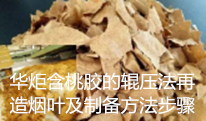 华炬新产品研究所技术咨询委员会科研人员现推荐一项一种含桃胶的辊压法再造烟叶及制备方法步骤,该技术与现有技术相比,该技术提取得了以下有益效果: (1) 该技术通过将桃胶作为添加剂制备辊压法再造烟叶,解决了解决传统薄片胶生产的再造烟叶烟气灼热感,改善了再造烟叶的光泽和油润性,增加烟气的甜润感,使辊压法再造烟叶的品质得到了大幅度的提升。 (2)本该技术在辊压法再造烟叶中加入桃胶能够降低薄片胶、羧甲基纤维素钠和木浆纤维的添加比例,提高辊压法再造烟叶的物理指标和内在品质,从而达到卷烟提质降耗、降焦减害的效果,现将该一种含桃胶的辊压法再造烟叶及制备方法步骤及技术方案及实施例介绍如下供研究交流参考:(211241 331579)