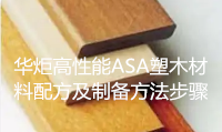 华炬新产品研究所技术咨询委员会科研人员现推荐一项一种高性能ASA塑木材料配方及制备方法步骤,该技术的优点在于:1、该技术的ASA塑木材料制备中所用的木粉经过助剂处理,提高了和ASA的结合性能和界面相容性,提高了产品的质量。2、该技术的原料ASA高胶粉经过抗氧剂、紫外机剂和色粉的处理后制成ASA颗粒,然后再和木粉混合制备型材,提高了材料的界面相容性和质量的稳定性,制得的产品性能得到明显的提高。3、该技术的加入了一定含量的发泡剂,在保证产品质量的同时,减少了原料利用,降低了生产成本以及产品重量,使产品更加便于运输和安装。4、该技术的ASA塑木材料所使用的木粉为40、60、80、100、120目的一种或一种以上的混合;将木粉的粒径控制在一定范围内,提高了塑木材料的机械和物理性能。5、该技术采用助剂处理后的ASA颗粒在160-190℃下和木粉共挤出为型材,降低了挤出温度,达到了节能降耗的目的,现将该一种高性能ASA塑木材料配方及制备方法步骤及技术方案及实施例介绍如下供研究交流参考:(641321 233563)