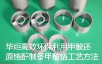 华炬新产品研究所技术咨询委员会科研人员现推荐一项一种高效环保利用甲酸还原铬酐制备甲酸铬工艺方法,该技术该技术利用甲酸还原铬酐制备甲酸铬的方法,在反应中甲酸既起到还原剂的作用,又起到配位剂的作用,制备过程不需要加入硫酸,也不需要加入其它的还原剂,不会产生含有硫酸盐的废液,不会对环境造成污染;甲酸可以直接将铬酐中Cr(Ⅵ)还原为Cr(Ⅲ),并和Cr(Ⅲ)配位直接生成甲酸铬,反应结束后降温,甲酸铬直接结晶,过滤后得到粗制的甲酸铬,整个反应流程短,能耗低,残液可以回用,不会对环境造成污染,是甲酸铬的一种绿色生产技术。得到的甲酸铬可用作陶瓷的渗花剂、印染助剂、皮革鞣剂、电镀材料、合成金属络合染料的原料和高分子材料合成的催化剂等,具有很好的经济效益和社会效益,现将该一种高效环保利用甲酸还原铬酐制备甲酸铬工艺方法及技术方案及实施例介绍如下供研究交流参考:(611511 234414)