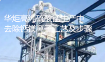 华炬新产品研究所技术咨询委员会科研人员现推荐一项一种高纯硫酸锰生产中去除钙镁离子工艺及步骤,该技术方案所具备的优点及积极效果为:第一、该技术通过粗硫酸锰制备方法采用脱硫-硫化-循环工艺,使锰形成固体并从体系中分离,解决了硫酸锰溶液中连二硫酸锰的影响问题,降低了工艺成本;同时,通过搅拌器控制方法风机延迟于电机停止,使电机的余热散去,避免因为余热造成电机内部线圈的损伤,提高了电机的使用寿命;避免了由于电机和风机同步转动而导致容易产生震动和噪音,以及使得风机磨损加快,严重影响风机的使用寿命的问题。第二,该技术通过粗硫酸锰制备方法采用脱硫-硫化-循环工艺,使锰形成固体并从体系中分离,解决了硫酸锰溶液中连二硫酸锰的影响问题,降低了工艺成本;同时,通过搅拌器控制方法风机延迟于电机停止,使电机的余热散去,避免因为余热造成电机内部线圈的损伤,提高了电机的使用寿命;避免了由于电机和风机同步转动而导致容易产生震动和噪音,以及使得风机磨损加快,严重影响风机的使用寿命的问题,现将该一种高纯硫酸锰生产中去除钙镁离子工艺及步骤及技术方案及实施例介绍如下供研究交流参考:(611511 241558)