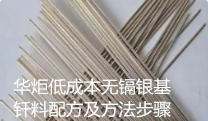 华炬新产品研究所技术咨询委员会科研人员现推荐一项一种低成本无镉银基钎料配方及方法步骤,该技术的有益效果:1、合金系统为Ag-Cu-Zn-Sn四元合金组成,熔化温度范围为570~580℃,钎焊温度为600℃~610℃,焊缝饱满,表面光洁。在Zn、Ag、Cu的共晶点加入少量Mg,一方面可以降低材料熔化温度,更重要的是钎料中Mg元素存在对母材氧化膜的破除有很好的效果,能够增强焊着率和焊接强度。2、该技术在无镉银基钎料的基础上面加入NaF与P不仅可以降低熔点,提高了焊料的耐腐蚀性能,腐蚀电流密度为1.742~2.108μAcm-2。本发明中Sn的加入可有效提高流动性、润湿性,降低固、液相线温度,减小熔化区间,现将该一种低成本无镉银基钎料配方及方法步骤及技术方案及实施例介绍如下供研究交流参考:(841131 523514)