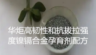 华炬新产品研究所技术咨询委员会科研人员现推荐一项一种高韧性和抗拔拉强度镍镉合金孕育剂配方,该技术提供的镍镉合金孕育剂,能够改善产品的机械性能,提高镍镉合金产品的韧性和抗拔拉强度,现将该一种高韧性和抗拔拉强度镍镉合金孕育剂配方及技术方案及实施例介绍如下供研究交流参考:(611511 226542)