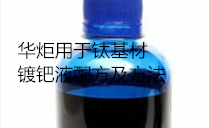 华炬新产品研究所技术咨询委员会科研人员现推荐一项一种用于钛基材镀钯液配方及方法,该技术的积极进步效果在于:该技术的镀钯液适用于常规电镀基材,也适用于钛基材,不需要媒介层,即可实现电刷镀并能够迅速简便地完成大面积施镀,刷镀效果好且不会造成钯过多沉积,镀层均匀致密有光泽,电镀产品耐腐蚀优良,成本更低,并且镀钯液本身碱性小,对环境影响小,具有极大经济价值,现将该一种用于钛基材镀钯液配方及方法及技术方案及实施例介绍如下供研究交流参考:(611511 623553)