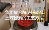 华炬新产品研究所技术咨询委员会科研人员现推荐一项一种复合酶法辅助醇提辣椒素的工艺方法,该技术的优点是:1、该技术以复合酶处理辣椒粉后,再用乙醇法提取辣椒素的总提取率比乙醇直接提取的提取率高19.1%,可全部将辣椒素提完,并且减少了有机溶剂的用量和提取时间。2、对设备要求不高、降低了生产成本、适合大工业生产,现将该一种复合酶法辅助醇提辣椒素的工艺方法及技术方案及实施例介绍如下供研究交流参考:(211341 217638)