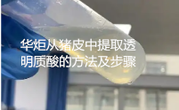 华炬科技新产品研究所技术咨询委员会科研人员现推荐一项一种酶解法猪皮中提取透明质酸的方法及步骤,从猪皮中提取透明质酸的方法,是一种以扩大原料来源,形成规模化生产链,同时又简化工艺,通过对参数的修改来提高收率,并节能省时为目的而开发出来的新方法,该技术的优点和积极效果是:该技术采用猪皮为原料提取透明质酸,打破了市场素以鸡冠为原料生产透明质酸的现状,而且猪皮来源广,其中透明质酸又含量丰富,可以形成规模化的生产链,以满足市场对透明质酸的需求,该技术方法所制得的透明质酸收率大大提升,质量也略有上升,现将该一种酶解法猪皮中提取透明质酸的方法及步骤及技术方案及实施例介绍如下供研究交流参考:(311211 346448)