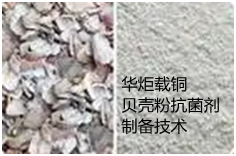 华炬新产品研究所技术咨询委员会科研人员现推荐一项载铜贝壳粉抗菌剂制备技术方法,该技术产品的优点是原料来源广、成本低,操作条件温和,工艺简单,设 备投资和能耗小,制备的载铜贝壳粉抗菌剂分散性和抗菌性能好,可广泛 应用于化妆品、橡胶、涂料等行业,现将该载铜贝壳粉抗菌剂制备技术方法实例介绍如下供研究参考:(341371 241665)