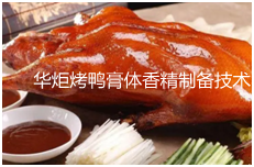 随着食品风味的不断发展,鸭肉风味香精在方便面、方便粉丝、汤料、休闲食品、肉 制品、烤鸭等食品生产领域中具有广泛的用途。目前,鸭肉香精主要采用美拉德反应制备, 或者是通过香料调配制得,前者香味不足,后者大多存在香气香味不够逼真、不够和谐等 缺点。华炬新产品研究所技术咨询委员会科研人员现推荐一项烤鸭膏体香精制备技术工艺方法,该技术产品是针对上述现有技术中的存在问题,改进工艺,提供了一种天然烤鸭膏 体香精的制备方法,制得的烤鸭膏体香精天然感强、烤香味浓郁、自然和谐逼真、口感极佳,营养成分丰富,现将该烤鸭膏体香精制备技术工艺方法实例介绍如下供研究参考:(311341 521645):