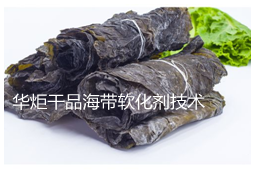 为克服现有技术中海带软化效果差,处理时间长,软化效率低,软化试剂易残留;软化后的海带腥味大,产品色泽差的不足的技术问题华炬新产品研究所技术咨询委员会科研人员现推荐一项干品海带软化剂技术配方及方法,采用该技术产品方法软化后的海带颜色翠绿、富有光泽,脆嫩不粘、富有弹性,腥味降低,既可以大幅度降低海带硬度,又可以提高海带软化效率,缩短海带软化所需时间,工序合理,操作简单可靠,易实现规模化生产的海带软化方法,现将该干品海带软化剂技术配方及方法介绍如下供研究参考:(341511 445355)