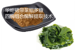 华炬新产品研究所技术咨询委员会科研人员现推荐一项裙带菜粗多糖四酶组合酶解提取技术方法,该技术采用了四种生物酶组合酶解与传统的水提法相结合的方法提取裙带菜粗多糖,提取条件温和,易于控制,裙带菜粗多糖的提取率可达 16.47%,远高于普通水提、酸提和碱提等方法的提取率,提高了裙带菜下脚料的利用水平及其附加值,增加了裙带菜资源的综合利用率,为裙带菜下脚料的开发利用开辟了新的途径,现将该裙带菜粗多糖四酶组合酶解提取技术方法实例介绍如下供研究参考:(341511 447645)