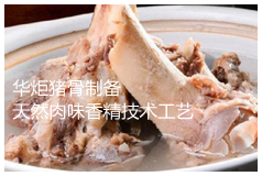 华炬新产品研究所技术咨询委员会科研人员现推荐一项猪骨制备天然肉味香精技术工艺方法,该技术利用酶把骨汤水解为富含游离氨基酸和小分子肽的水解液,方便进行美拉德反应,在水解液中添加的甘氨酸可以改善肉香味,使香味更加丰富饱满,添加的大豆水解蛋白,既可以增加香精的肉香味,又可以减少猪骨提取物的加入量,减少生产成本,现将该华炬猪骨制备天然肉味香精技术工艺方法实例介绍如下 供研究参考:(311211 321565)
