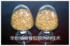 猪骨骨胶有多年的使用历史,是一种天然性质的胶粘剂,曾经大量的应用于造纸、印刷、包装、木材、电镀、轻纺、家私、纱布等各个行业,要扩大其在浅色木材和纸张行业的应用需对其进行脱色处理,华炬新产品研究所技术咨询委员会科研人员现推荐一项猪骨骨胶脱色剂技术配方及脱色方法,该技术产品通过猪骨骨胶脱色剂彻底吸附骨胶中的色素分子,同时具有漂白作用,从而通过猪骨骨胶脱色剂能够有效的对骨胶进行脱色,并且不改变骨胶的粘结强度,使脱色后的骨胶具有较高的粘结强度,并且操作简单,处理成本低,脱色效果较好,不返色。该技术产品配方简洁、使用方便、脱色效果好、价格低廉,现将该猪骨骨胶脱色剂技术配方及脱色方法介绍如下供研究参考:(311211 321825)