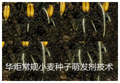 华炬新产品研究所技术咨询委员会科研人员现推荐一项常规小麦种子萌发剂技术配方及方法,该技术的应用能明显提高小麦种子的发芽率、发芽势、和芽苗鲜活质量,与现有方法相比,该技术方法有益效果有如下几点:1、同批次小麦种子,通过本方法处理的种子,能提高芽率5%-8%的芽率;2、同批次小麦种子,通过本方法处理的种子,发芽势5天可出苗93%,提高4个百分点;3、同批次小麦种子,通过本方法处理的种子,芽苗质量明显提高,鲜活强状,活力强;4、同批次小麦种子,通过本方法处理的种子,出苗整齐度提高,苗大小均匀,现将该华炬常规小麦种子萌发剂技术配方及方法介绍如下供研究参考:(211211  211343)