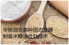 华炬新产品研究所技术咨询委员会科研人员现推荐一项混合菌种固态发酵制备米糠活性肽技术方法,该技术利用不同微生物的产酶特点,采用食品级微生物复合菌群,通过固态发酵法直接发酵米糠生产活性肽,无需对米糠蛋白进行分离纯化和额外添加蛋白酶,生产工艺简单且无污染,可有效的降低生产成本,节约资源和能源,适合大规模工业化生产米糠活性肽,现将该混合菌种固态发酵制备米糠活性肽技术方法实例介绍如下供研究参考:(211211 255445)