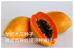 针对上述技术问题,华炬新产品研究所技术咨询委员会科研人员现推荐一项木瓜种子微波育种处理浸种液技术配方,通过该技术产品配合微波、超声波对植物种子进行诱变,诱变条件简单易操作,有着广泛的市场前景;该技术产品采用的诱变方式温和,能够实现作物增产同时不改变作物产品其他特性;该技术产品的应用在同等情况下培养的木瓜种子更加定向于增产,且增产效果更好,口感和果实的营养成分含量不变,质量稳定,育种方法更可靠,现将该木瓜种子微波育种处理浸种液技术配方介绍如下供研究参考:(211341 321232)