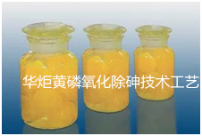 华炬新产品研究所技术咨询委员会科研人员现推荐一项黄磷氧化除砷技术工艺方法,该技术在混合脱砷剂作用下,黄磷形成良好的乳化颗粒状,大大增加了脱砷剂与黄磷的接触面积,促进脱砷反应的进行;采用分段多次投加氧化增强剂的方式,保证整个脱砷过程脱砷效果的持续性和高效性,同时在反应过程中氧化增强剂分解成大量的微小气泡,也增加了固液接触面;混合脱砷剂中的催化剂使脱砷反应更快速高效进行,保证了高效脱砷的同时实现了黄磷的高收率;热超纯水进行水洗,并且循环利用,保持黄磷纯净度的同时降低了废水的排放量,减少了耗能,对环境无污染,降低生产成本,是一种高效、安全、经济的脱砷方法,具有较好的经济效益和社会效益,现将该黄磷氧化除砷技术工艺方法实例介绍如下供研究参考:(611541 227845)