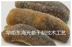 华炬新产品研究所技术咨询委员会科研人员现推荐一项东海光参干制技术工艺方法,该技术与现有技术相比,光参在干制过程中肌纤维收缩,表面硬化,发生不可逆性形变,该技术采用物理穿刺、改良液浸泡、阶梯升温定型以及一次干燥加回湿加二次干燥等物理与生物方法相结合,有效抑制肌纤维变细萎缩,使得制得的光参干制品外形完整饱满,发制时间显著缩短(小于10h),发制后无刺激性或腐败性气味,食用时口感软糯,符合大多数人口味,现将该东海光参干制技术工艺方法实例介绍如下供研究参考:(341411 335645)