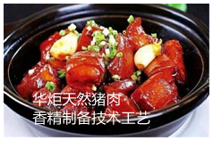 华炬新产品研究所技术咨询委员会科研人员现推荐一项天然猪肉香精制备技术工艺方法,该技术原理:脂肪能提供猪肉香精的特征香气;糖类影响在影响Maillard 反应速度;含硫化合物是提供猪肉特征的重要组成部分主要有维生素B1、半胱氨酸、蛋氨酸、胱氨酸及其盐等;氨基酸混合物可以加大香精的香气并使头香、主体香和尾香更趋于和谐。制备出具有浓郁的猪肉肉香、脂香和烤香的猪肉香精,现将该天然猪肉香精制备技术工艺方法实例介绍如下供研究参考:(311211  311457