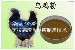 乌鸡是我国特有的药食同源的禽类资源,集药、补、食三大功能于一身,极具开发价值。近年来,伴随着香精香料和调味品行业的迅猛发展,各种粉体香精及调味粉种类越来越多,作为主流的鸡粉更是种类繁多;但到目前为止,乌鸡粉种类并不多且不多见。市面上的乌鸡粉,主要是经乌鸡预处理、酶解、喷雾干燥工艺制成的纯乌鸡粉。纯乌鸡粉虽然香气较纯正,但因在预处理、酶解及喷雾干燥加工过程中,有风味成分损失,而又没进行增香处理,其香气强度、饱满度和烹调感都较弱,高温耐受性也较差;另外,纯乌鸡粉价格比较昂贵,在一些中低端的鸡精、鸡粉等调味料产品中的应用会受到很大限制,而普通鸡粉又难以完全替代乌鸡粉,因此市场迫切需要一种价格比较低、添加量较少而又香气浓郁逼真的乌鸡粉来作为市场的补充。
