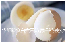 华炬新产品研究所技术咨询委员会科研人员现推荐一项即食白煮蛋防腐保鲜剂技术配方,该技术产品的使用能使白煮蛋能够长时间贮藏,防止其色变,降低失水率,并维持其良好风味,颜色和质地,同时保持鸡蛋原有的营养价值,该技术产品具有配方科学,操作简单,效果显著,成本低,适于实用,为居家、旅游提供了一种美味休闲的方便快捷食品,也为研发新型蛋制品开辟了一条新路,市场潜力巨大。现将该即食白煮蛋防腐保鲜剂技术配方介绍如下供研究参考:(311311 311656)
