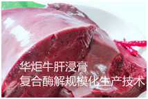 华炬新产品研究所技术咨询委员会科研人员现推荐一项牛肝浸膏复合酶解规模化生产技术工艺,该技术增加肝细胞破壁步骤,有利于细胞内物质的浸出(细胞质等);有利于肝中蛋白质与混合酶充分接触,极大的提高了酶解的效果;采用生物酶解,相比酸水解或热水水解条件更温和,环境更友好,可以最大程度上将不溶于水的动物蛋白切割成可溶于水的氨基酸、短肽等有利于人体吸收的营养物质。比较之下,酸水解条件竣烈,有可能在水解过程中形成其他物质,有安全性隐患;而热水水解在高温状态下动物蛋白会发生蛋白凝聚现象,不利于水溶性物质的浸出;将酶解过程与第一次热水提取过程合并,减少了过滤和装罐步骤。由于无论酶解、酸水解还是热水水解,其提取液粘度均很大,造成过滤困难。而将酶解过程与第一次热水提取过程合并,会降低提取液的浓度,有利于营养物质的浸出,并且减少了提取液过滤和提取残渣重新装罐的过程,这种提高不仅仅是测定数据的改变,而是使肝浸膏质量有了质的改变,可使肝浸膏最大限度的发挥营养价值,现将该牛肝浸膏复合酶解规模化生产技术工艺实例介绍如下供研究交流参考:(311241 364645)