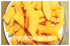 华炬新产品研究所技术咨询委员会 技术人员现推荐一项南瓜片制作技术工艺方法,该技术产品方法简单易控,开发出了新的南瓜食品品种,制得的南瓜片色泽金黄,香脆可口,口味独特,该技术产品配方简单、食用方便,价格低廉,便于推广,现将该南瓜片制作技术工艺方法介绍如下供研究参考:(211341 271562)