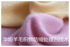 华炬新产品研究所技术咨询委员会科研人员现推荐一项羊毛织物防缩处理剂技术配方,该技术产品与现有技术相比,具有良好的防缩处理效果,可使羊毛织 物的缩水率由50%降至2%,制备工艺简便,对羊毛织物表面无任何化 学损害,现将该羊毛织物防缩处理剂技术配方实例介绍如下供研究参考:(311271 228665)