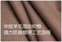 华炬新产品研究所技术咨询委员会科研人员现推荐一项羊毛混纺织物强力防臭整理工艺流程,该技术是一种新型羊毛混纺织物强力防臭整理工艺,其充分利用生物酶,天 然环保,无需高温,并且处理后的羊毛混纺织物防臭效果,现将该羊毛混纺织物强力防臭整理工艺流程实例介绍如下供研究参考:(311271 228545)