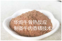 华炬新产品研究所技术咨询委员会科研人员现推荐一项牛骨热反应制备牛肉香精技术方法,该技术在牛骨粉碎前独特的采用高温高压脱脂处理步骤,不仅脱脂率高,减小了后续超微粉碎的压力,还有效增强了骨胶原与水分子之间的作用,提高蛋白的溶出率。同时,经过高温处理过的牛骨骨质结构变得疏松、脆化,能够有效缩短后续酶解的时间,提高了香精的制备效率;在热反应步骤中具体采用pH为7.0-8.0的条件下,110-120℃的反应温度,符合还原糖、氨基酸、酶解多肽液等反应物的整体物理学特性,能够促进反应的快速、完全进行。在调香步骤中,独特的采用骨味基料与肉香味更浓的卤汁进行复合,使得成品香精香味更加饱满稳定,香精的香气天然感好,留香时间长,耐高温、不易出现分层,口感也更加浓郁醇厚;采用肉类加工副产品——牛骨作为主原料,原料廉价易得,香精的提取过程操作简单,生产效率高,成品品质好,有效提高了牛骨的综合利用率,现将该牛骨热反应制备牛肉香精技术方法实例介绍如下供研究参考:(311241 351745)