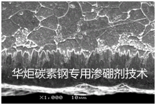 华炬新产品研究所技术咨询委员会科研人员现推荐一项碳素钢专用渗硼剂技术配方,该技术产品的使用减少了对稀土的使用量,并提高了渗硼效果。加入添加剂增强低温溶解性能提高渗层的深度和渗层的均匀,能够降低渗硼的温度。现将该碳素钢专用渗硼剂技术配方介绍如下供研究交流参考:(611541 224859)