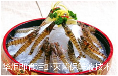 华炬新产品研究所技术咨询委员会技术人员现推荐一项即食活虾灭菌保鲜液技术配方,该技术产品的应用可以快速有效的将活虾表面的细菌除掉,不会影响活虾的品质,且具有很好的保鲜效果,现将该即食活虾灭菌保鲜液技术配方介绍如下供研究交流参考:(341311 553366)