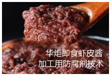 虾皮制作而成的虾皮酱一般作为调味使用,放入各种鲜菜、肉内食用, 味道鲜美,极具营养,传统工艺配方的虾皮酱具有高盐度和腥臊味的缺点,使虾皮酱的食用受到了一定的限制,难以开瓶即食用,且高盐度的虾皮酱对消费者的健康也有一定的不利影响。 华炬新产品研究所技术咨询委员会科研人员现推荐一项即食虾皮酱加工用防腐剂技术配方,该即食虾皮酱加工:原料预处理→依次添加原料进行熬制→热灌装的的方法制作而成,所制作的虾皮酱较传统工艺生产的虾皮酱,具有口感细腻鲜美、粘稠适中、质地均匀、底腥臊等优点,该技术产品的使用所采用的原材料均简单易购买,成本低廉,制作方法简单,可以批量生产,使用该技术制作而成的虾皮酱具有防腐效果好、开瓶即食、低盐高钙、美味可口的优点,具有很大的市场前景。现将该即食虾皮酱加工用防腐剂技术配方介绍如下供研究交流参考:(341311 441646)