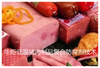 低温猪肉制品的货架期问题也是我国肉类工业长期以来急待解决的问题。目前,国内对猪肉类保鲜技术的研究多集中在保鲜剂的使用方面,但真正应用于生产实际的防腐效果显著的还是比较少,这说明还存在不少问题。华炬新产品研究所技术咨询委员会科研人员现推荐一项低温猪肉制品复合防腐剂技术配方,该技术产品将几种防腐剂复合使用,比各防腐剂单独使用时的防腐效果好。复合防腐剂可以破坏微生物许多重要的酶系、降低产品的水分活性,还可通过影响细胞膜和抑制革兰氏阳性菌的细胞壁的合成来杀死细菌,所以能充分抑制低温猪肉制品中腐败菌的生长和繁殖,特别是对革兰氏阳性菌有较强的抑制作用,该技术产品操作简单,使用方便,并且安全可靠。可使低温猪肉制品的保质期延长2倍,保鲜效果好。现将该低温猪肉制品复合防腐剂技术配方介绍如下供研究参考:(311211  315243