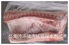 冷冻猪肉是指猪宰杀后,经预冷排酸、急冻,继而在-18℃以下储存,深层肉温达-6℃以下的猪肉冻品,优质冷冻肉一般在-28℃至-40℃急冻,肉质、香味与新鲜肉或冷却肉相差不大。伴随着冷鲜猪肉大量消费的同时,冷冻状态的猪肉数量也在不断增加,-18℃及以下温度环境贮藏的冷冻猪肉,能够在基本确保猪肉品品质的前提下,存放时间长达1年左右,但是,由于冷冻贮藏的特殊环境因素,猪肉冻品表面水分流失严重,导致猪肉冻品表面的肉质口感严重下降,同时,由于水分流失、脂质氧化导致的风味的劣化,如膻腥味、蛤味等,给猪肉冻品的滋味体验带来诸多的不利影响,使冷冻猪肉在产品等级和档次上大大受限,从而导致其附加值的降低,针对上述技术问题华炬科技新产品研究所技术咨询委员会技术人员现推荐一项冷冻猪肉祛味保水剂技术配方,该技术产品喷洒于速冻后的猪肉表面,再经包装、冷冻贮藏,可有效地去除冷冻猪肉因冷冻储藏常有的腥膻味,脂肪氧化所导致的蛤味,减少猪肉冻品表面的干耗,该技术配方原料组成均在食品要求范围,不需要添加其他复杂的原料,去味保水效果好,生产工艺简单,成本低,现将该冷冻猪肉祛味保水剂技术配方介绍如下:(311211 313634)
