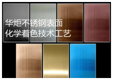 华炬新产品研究所技术咨询委员会科研人员现推荐一项不锈钢表面化学着色技术工艺方法,该技术制得的着色后的不锈钢,耐腐蚀性能、耐磨性能得到了极大地提升,并且上色快,色泽鲜艳、操作简单,可大规模的推广使用。其中,清洁液不仅能有效的去除不锈钢表面的锈迹和油污,还能加强不锈钢在电解抛光工艺时的抛光效果;抛光液中的柠檬酸二钠盐1.5水合物能有效的加强1-癸硫醇形成粘膜的效果,两者协同作用,能极大的提升不锈钢电解抛光的效果,提升不锈钢表面的光泽度和镜面度;氯甲酸二甘醇酯和联苯酚协同作用,能有效的防止抛光电流过大对不锈钢棱角处及尖端产生腐蚀;羟乙基脲和乙撑硫脲能有效的提升电解抛光的速度,使得不锈钢表面气泡易于脱附,提升抛光后不锈钢表面的平整光洁度;着色液中的十六烷基氯化吡啶翁和甘油磷酸钠协同作用,能有效的提升着色膜的耐磨性和耐腐蚀性能;二甲脲不仅能加快着色速度,其与着色液中的异丁酸钠盐协同作用,能有效的提升着色膜的光泽度,极大地提升了彩色不锈钢的观赏价值,现将该不锈钢表面化学着色技术工艺方法实例介绍如下供研究参考:(841141 123635)
