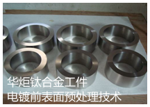 华炬新产品研究所技术咨询委员会科研人员现推荐一项钛合金工件电镀前表面预处理技术工艺方法,该方法在去除钝化膜时彻底、均匀,并避免过腐蚀;所生成的预镀层与其它镀种具有良好的镀层结合力。该方法生产成本低,操作性强,经济和技术指标优越。使用该预处理技术,可以顺利地在钛合金表面上进行电镀镍、化学镀镍、无氰镀铜、无氰镀银等多种电镀工艺,各种镀层结合力均能经受起热震法和划痕法检验,现将该钛合金工件电镀前表面预处理技术工艺方法及实例介绍如下供研究参考:(611511 363557)