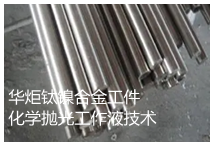 华炬新产品研究所技术咨询委员会科研人员现推荐一项钛镍合金工件化学抛光工作液及生产方法,该技术产品可有效去除钛镍合金工件加工过程中生成的后氧化膜、润滑剂层(石墨层)和杂物,得到镜面级抛光表面,具有高去除率、低损伤的优点,而且抛光后清洗方便,省时省力,节省能耗,是一种抛光后清洗方便、高去除率、低损伤的钛镍合金工件化学抛光工作液及生产方法,现将该钛镍合金工件化学抛光工作液及生产方法介绍如下供研究参考:(611511 363535)