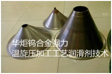 钨合金是以钨为基加入其他元素组成的合金。在金属中,钨的熔点最高,高温强度和抗蠕变性能以及导热、导电和电子发射性能都好,比重大,除大量用于制造硬质合金和作合金添加剂外,钨及其合金广泛用于电子、电光源工业,也在航天、铸造、武器等部门中用于制作火箭喷管、压铸模具、穿甲弹芯、触点、发热体和隔热屏等。强力旋压工艺主要依靠坯料厚度的变薄来实现成形的,坯料外径基本保持不变。通常在进行强力旋压时,旋轮加于坯料的压强要比普通旋压时大得多,坯料的变形情况和普通旋压时大得多,坯料的变形情况和普通旋压时也大不相同。在普通旋压过程中,坯料厚度变化不大,但直径变化很大——由大变小或由小变大。而在强旋压过程中,坯料直径基本保持不变,但厚度变化很大——由厚变薄。因此强力旋压又称为变薄旋压。从工艺过程分析认为:强力旋压属轴向延展,变形区材料处在二向或三向应力状态,因而可产生较高的变形程度。根据旋压件的类型和金属变形机理的差异,强力旋压可分为锥形件强力旋压——剪切旋压和筒形件强力旋压——挤出强旋等两种。强力旋压用于各种、锥体等形体的旋压成型壳体的加工技术,是一种比较成熟的方法和工艺,也叫烫板法。钨合金强力温旋压润滑要求有良好的热氧化安定性、减摩极压抗磨、粘附性,足够的油膜强度和厚度,以克服温旋压加工过程中的下压力大,材料强度高,延展性差,变形困难,模具损害大的问题。