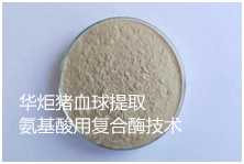 华炬新产品研究所技术咨询委员会科研人员现推荐一项猪血球提取氨基酸用复合酶技术配方及方法,该技术是针对氨基酸现有技术所存在的不足,提供一种绿色、高效、安全的猪血球复合氨基酸的方法,反应条件温和,反应时间短,方法简单易行,可操作性强,产出率高,营养成分活性成分保留完全,而且解决了猪血球蛋白脱色脱臭脱腥的难题,扩大了应用领域,成本低廉而经济效益显著。生产的食用复合氨基酸成品为淡黄、无臭无腥味、无定型粉末,现将该猪血球提取氨基酸用复合酶技术配方及方法实例介绍如下供研究参考:(311211 331647)