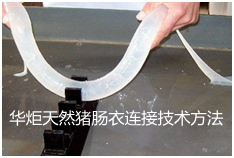 华炬科技新产品研究所技术咨询委员会科研人员现推荐一项天然猪肠衣连接技术方法,该技术制得的肠衣连接牢固,具有优异的耐水、耐盐、耐温性,工艺简单,成本低廉,可大大提高天然肠衣生产效率,降低生产成本,提高经济效益,现将该天然猪肠衣连接技术方法实例介绍如下供研究交流参考:(311211 357745)